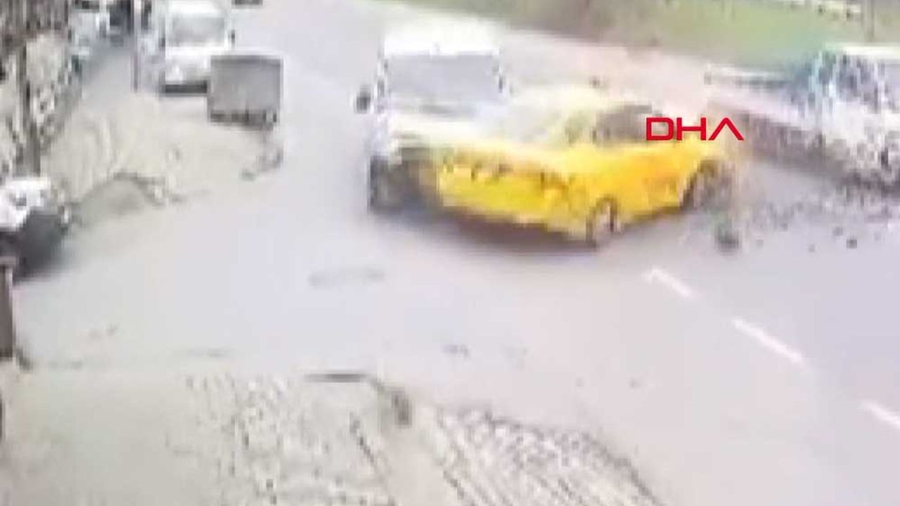 Başakşehir'de ara sokaktan yan yola çıkan taksi, çift yönlü trafikte sürücüsü hatalı sollama yapan kamyonet ile...