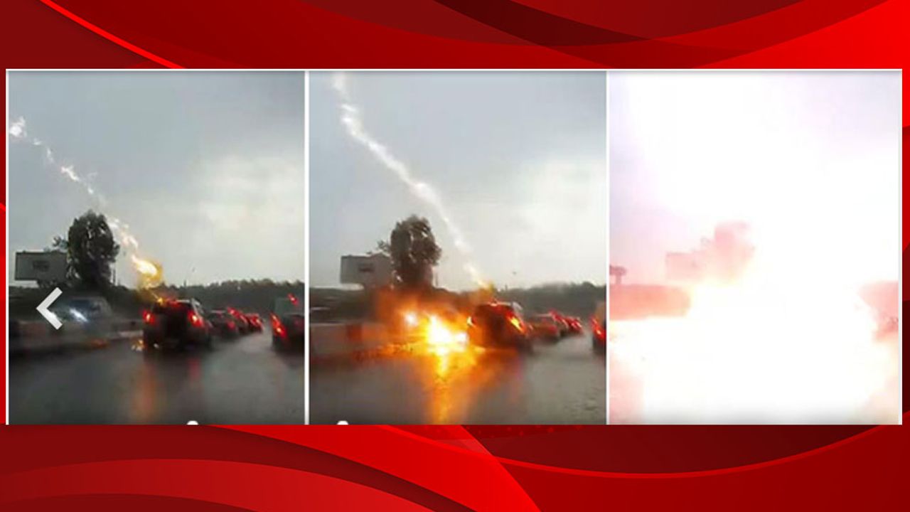 Rusya’da yolda hareket halinde giden cipin arka camına yıldırım düştü. O anları, cipin arkasında bulunan başka bir araç kamerası kaydetti.