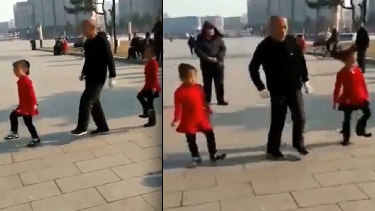 Sosyal Medya'da paylaşılan görüntüler adeta izleyenlerin içini ısıtıyor. Hong Kong'da kaydedilen görüntülerde de ve torunlarının muhteşem dansı izleyenleri büyüledi