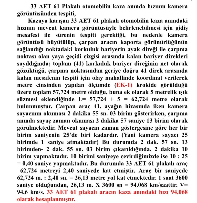 Güvenlik kamerası görüntüleri ve Bilirkişi raporları Ramazan Topal’ın 40-50 km hızla gidiyordum ifadesinin yalan olduğunu ortaya koydu.