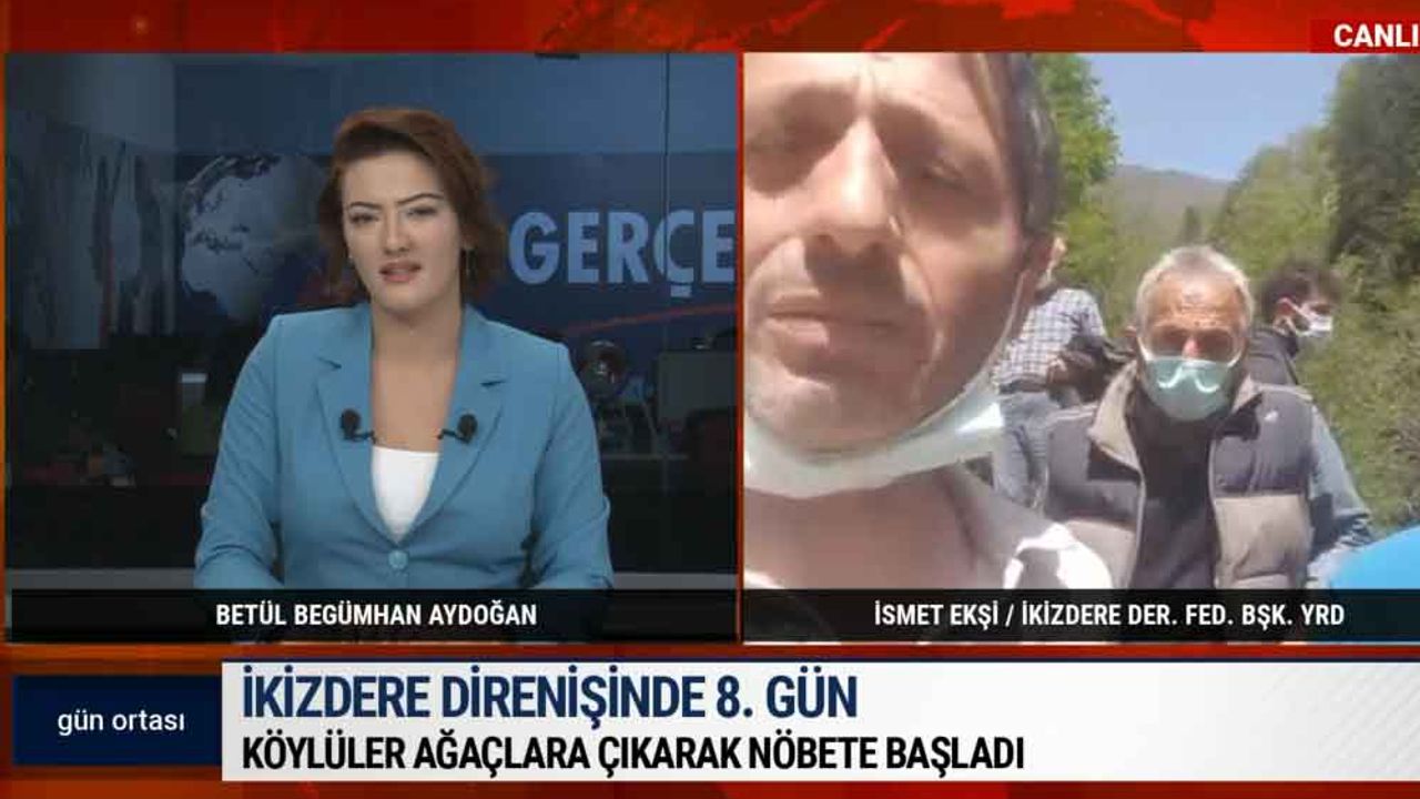 Genel İkizdere direnişinde 8. gün: 'Cengiz' başımızın belası, utanmadan çevreci reklamlar yayınlıyorlar - GÜN ORTASI 28.04.2021 - 15:11 28.04.2021 - 15:11 B. Begümhan Aydoğan'ın sunduğu Gün Ortası'na, CHP Genel Başkan Yardımcısı Ali Öztunç, CHP Trabzon Milletvekili Ahmet Kaya ve İkizdere Derneği Fed. Başkan Yardımcısı İsmet Ekşi bağlandı. İkizdere direnişinin 8. gününde...