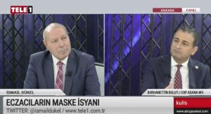 Tele1 ekranlarında canlı yayınlanan Kulis programında İsmail Dükel ve konuğu CHP Adana Milletvekili Burhanettin Bulut, "Liranın değer kaybetmesini Londra'daki finans kuruluşlarına bağlaması' konusunu değerlendiriyor.