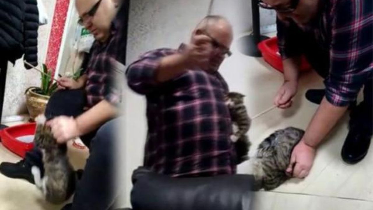 İş insanı elindeki sopayla kediye böyle işkence yaptı!