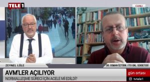 Tele1 ekranlarında yayınlanan Zeynel Lüle’nin sunduğu 'Gün Ortası' programına katılan İTO Genel Sekreteri Dr. Osman Öztürk, Normalleşme sürecinde ilk AVM'lerin açılımını sorgularken bu süreçte neler yaşanabileceği konusunu ele alıyor.