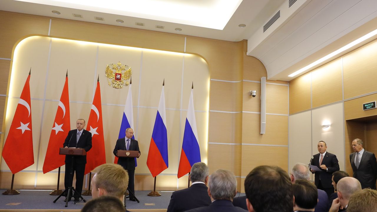 AKP'li Cumhurbaşkanı Tayyip Erdoğan ve Rusya Devlet Başkanı Vladimir Putin'in Soçi kentinde gerçekleştirdiği 6 saatlik görüşmenin ardından bir ortak basın toplantısı düzenlendi. Suriye'deki gelişmelerin...