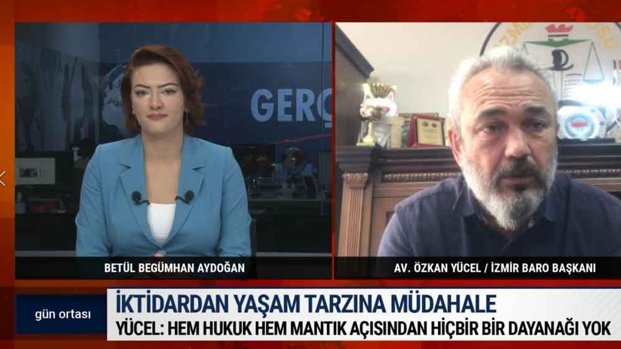Betül Begümhan Aydoğan'ın sunduğu Gün Ortası'nın bugünkü konuğu, İzmir Baro Başkanı Özkan Yücel oldu. Yücel, alkol kısıtlamasının hukuki bir boyutu olup olmadığı konusunda değerlendirmelerde bulundu.