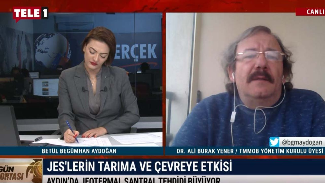 Betül Begümhan Aydoğan'ın sunduğu Gün Ortası'nın bugünkü konuğu, TMMOB Yönetim Kurulu Üyesi Dr. Ali Burak Yener oldu. Aydın'daki jeotermal santral tehdidinin büyümesi hakkında konuşan Yener, bölgedeki doğa tahribatına ne şekilde...