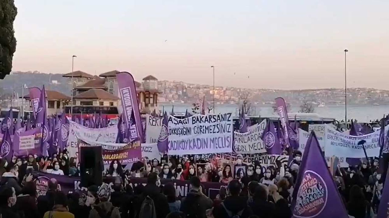 8 Mart Dünya Kadınlar Günü için Beşiktaş İskele Meydanı'nda buluşan Kadın Cinayetlerini...