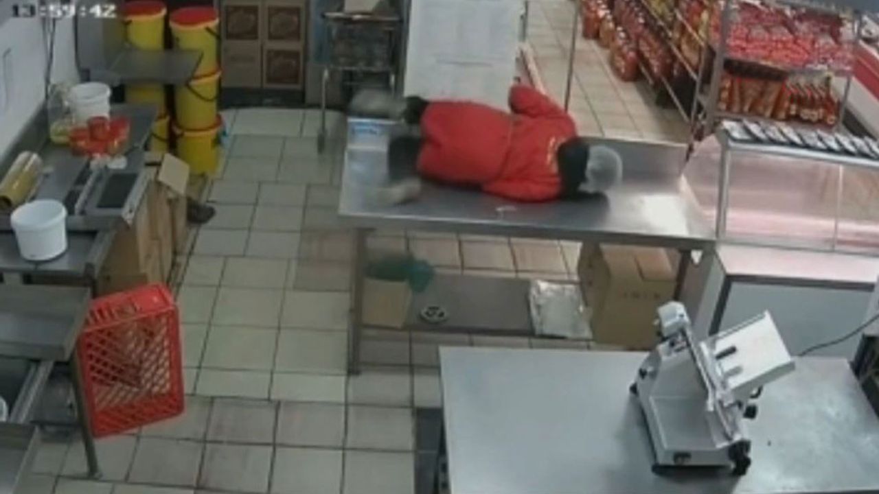 Güney Afrika’da, markete giren kedileri gören kadın çalışanın yaşadığı korku güvenlik kameralarına yansıdı.