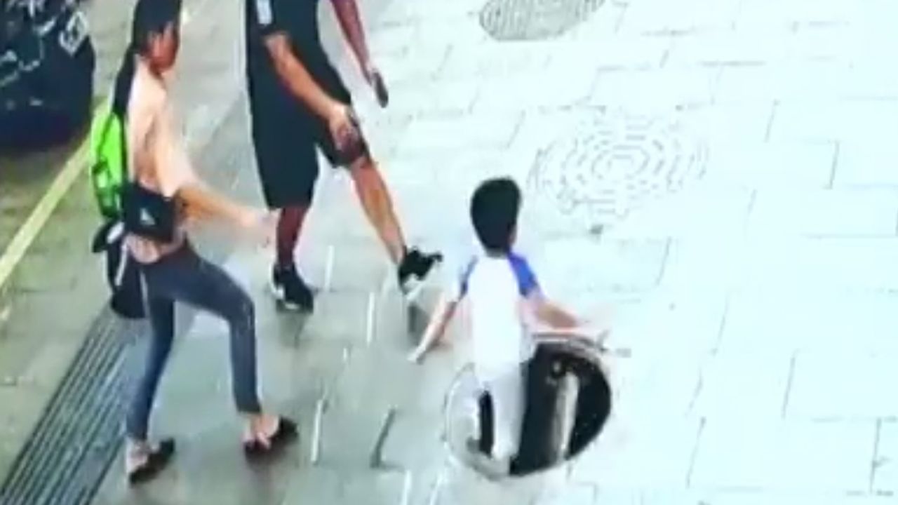 Çin'de üç yaşındaki bir çocuk kırık rögar kapağına basarak kanalizasyona düştü. Babası tarafından kurtarılan çocuğun görüntüleri anbean güvenlik kameraları tarafından kaydedildi.