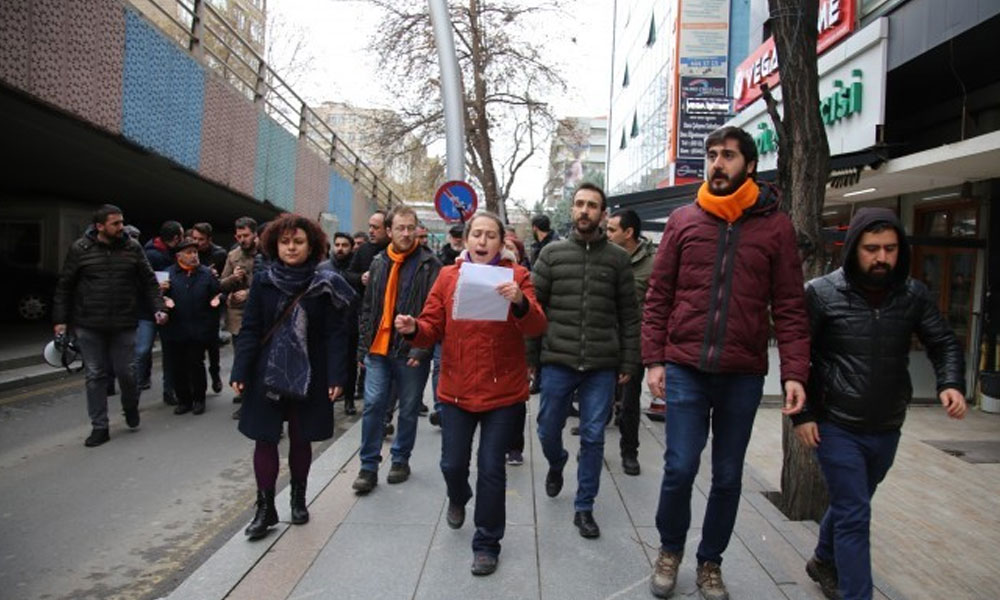 Halkevleri adına açıklama Eren Özmen tarafından okundu. Elazığ depremi, Van’daki çığ felaketi ve Sabiha Gökçen Havalimanı’nda bir uçağın pistten çıkması gibi olayları hatırlatan Özmen, sözlerinin devamında “Ülkemizin üzerinden kara bulutlar mı dolaşıyor yoksa AKP iktidarı mı? Bunca felaketin üst üste gelmesi Kızılay’da yaşananları gizleyemez” dedi.