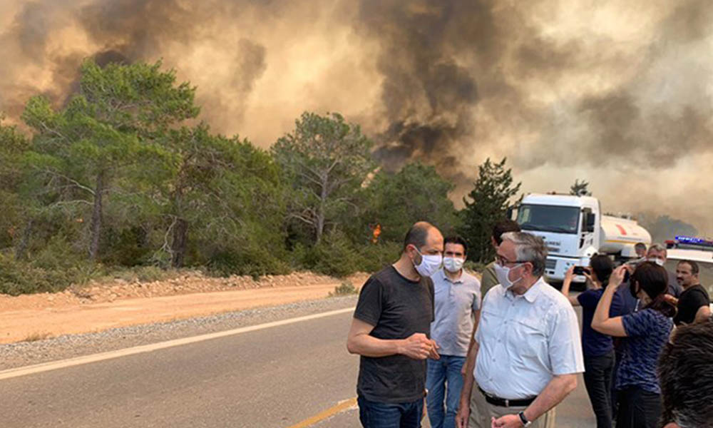 Yangın bölgesine giden KKTC Cumhurbaşkanı Mustafa Akıncı, Kuzey Kıbrıs’ın en güzel orman alanlarından olan bölgede çıkan yangından büyük üzüntü duyduğunu belirtti. Bölgede yaklaşık 8 ay önce fidan diktiklerini belirten Cumhurbaşkanı Akıncı, tüm gayret ve imkanlarla yangının söndürülmeye çalışıldığını söyledi.