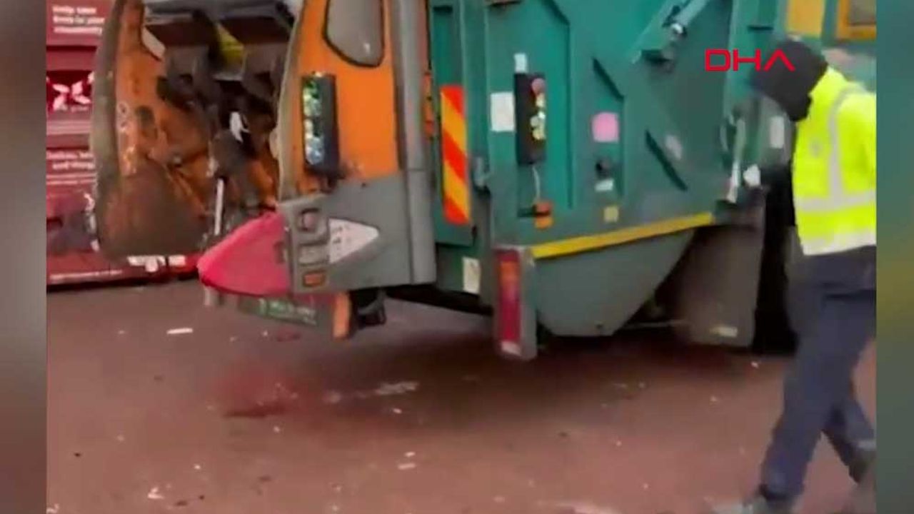 İskoçya'nın Glaslow kentinde çöpleri toplayan temizlik görevlileri konteyneri boşalttığı sırada düşen...