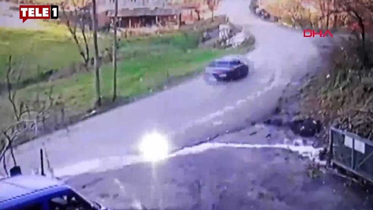 Zonguldak Ereğli ilçesinde, kontrolden çıkan otomobilin yol kenarındaki bahçeye savrulması güvenlik kamerasına yansıdı.
