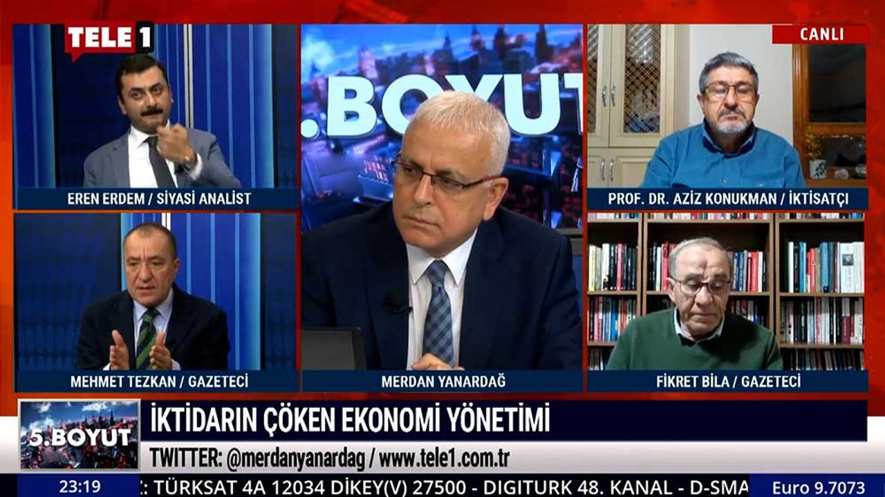 Merdan Yanardağ'ın yönettiği 5. Boyut'ta Siyasi Analist Eren Erdem, Gazeteci Mehmet Tezkan, Gazeteci Fikret Bila konukları; İktisatçı Prof. Dr. Aziz Konukman oldu. Programda, iktidarın ekonomi politikaları...