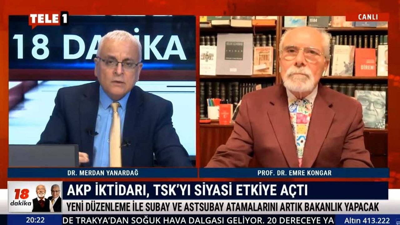 TELE1 Genel Yayın Yönetmeni Dr. Merdan Yanardağ ve Prof. Dr. Emre Kongar 18 Dakika’da bugün; Cumhurbaşkanlığı Kararnamesi'yle TSK'daki atamaların MSB'ye geçmesini değerlendirdiler.