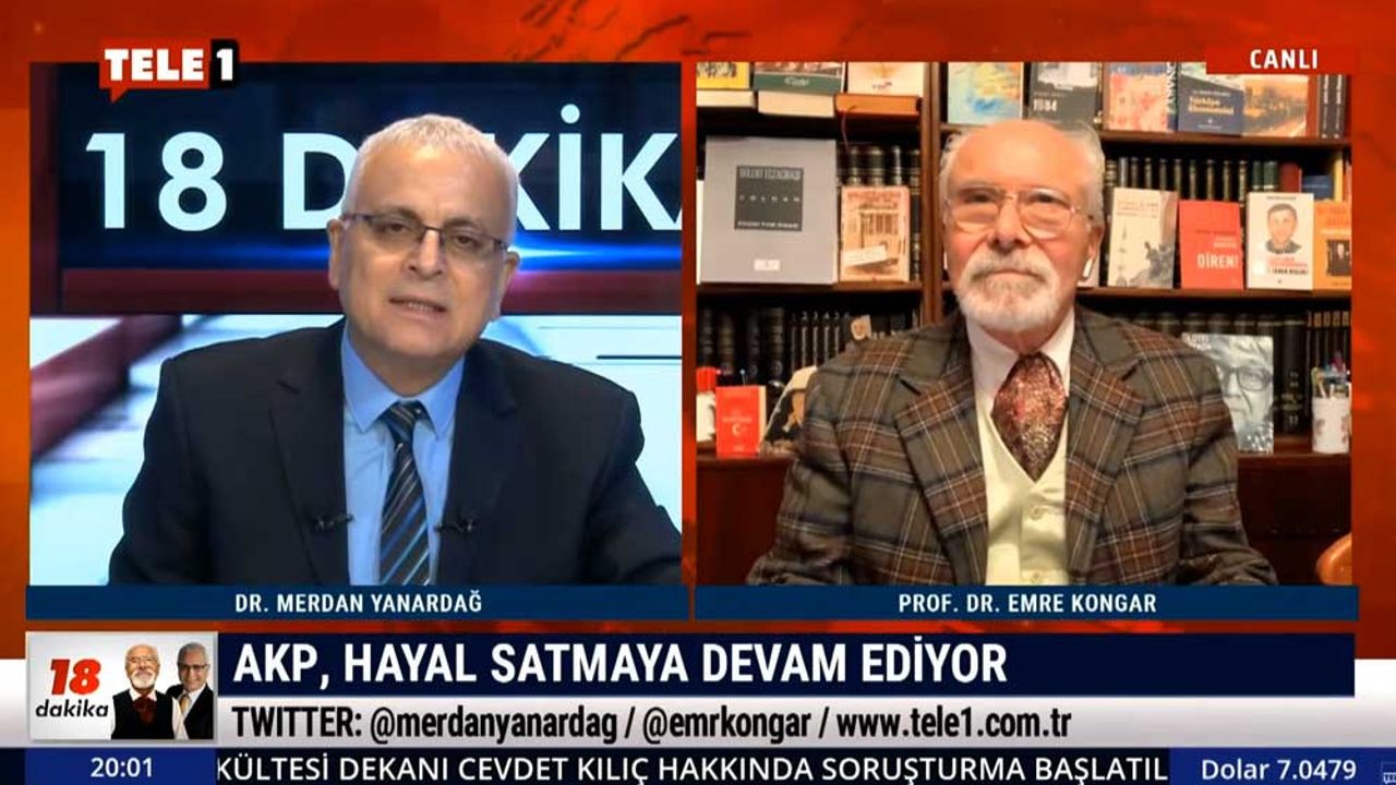 Genel Merdan Yanardağ: 'Hayallerin' büyük bir masala dönüşeceği belli 10.02.2021 - 20:16 10.02.2021 - 20:16 TELE1 Genel Yayın Yönetmeni Dr. Merdan Yanardağ ve Prof. Dr. Emre Kongar 18 Dakika’da bugün; AKP'li Cumhurbaşkanı Tayyip Erdoğan'ın 'Ay'a gidiyoruz' açıklamasını değerlendirdi. "Bu Ay'a gitme mevzusu yeni bir ticaret,...