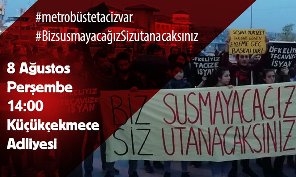 23 Nisan Salı günü Beylikdüzü istikametine hareket eden bir metrobüste cinsel saldırıya uğrayan kadın için destek çağrısı yapıldı. Metrobüste yaşanan taciz vakasıyla ilgili davaya İstanbul Barosu Kadın Hakları Merkezi (İBKHM) dahil oldu. Kadınlar sosyal medya üzerinden yayınladıkları bir video ile "Herkesi bu davayı sahiplenmeye çağırıyoruz" çağrısında bulundu.8 Ağustos Perşembe 14.00'te Küçükçekmece Adliyesi'ndeyiz!#metrobüstetacizvar#BizSusmayacağızSizUtanacaksınız pic.twitter.com/RI9WVF7RKl