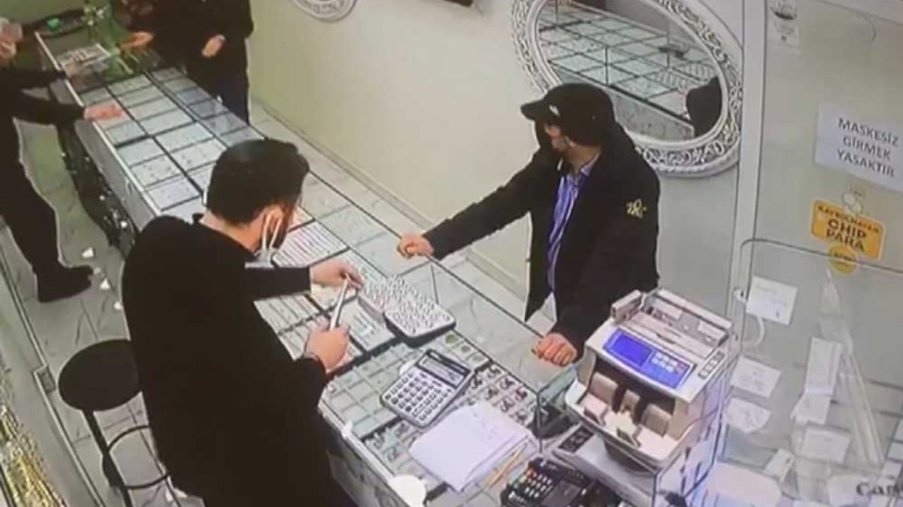 Müşteri olarak geldi, yüzük dolu tablayı böyle çaldı