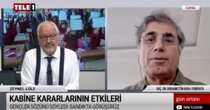 Tele1 ekranlarından yayınlanan ve Zeynel Lüle'nin sunduğu 'Gün Ortası' programına katılan Psikiyatr Doç. Dr. Burhanettin Kaya Eğitimde öğrencilerin gelecek kaygısı konusunu ve eve kapatılan 65 yaş üstü insanların ruhsal sorunlarını değerlendirdi.