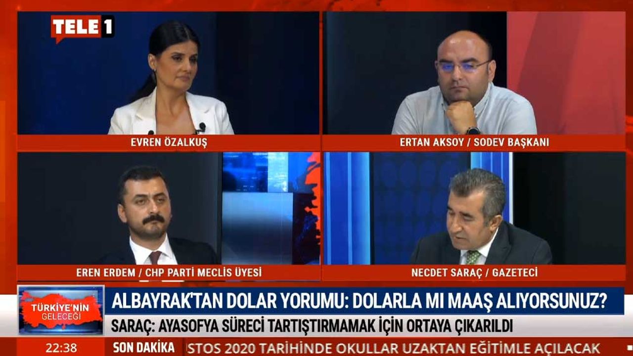 Evren Özalkuş'un sunduğu Türkiye'nin Geleceği'nin bugün ki konukları; SODEV Başkanı Ertan Aksoy, Gazeteci Necdet Saraç, CHP Parti Meclisi üyesi Eren Erdem ve Gazeteci Mehmet Tezkan oldu.