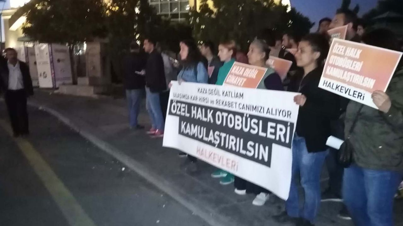 Genel Ölümlü otobüs kazasına protesto: Otobüsler kamulaştırılsın! 02.10.2019 - 14:28 02.10.2019 - 14:28 Ankara’nın Mamak ilçesi Saimekadın Mahallesi’nde dün (30 Eylül) bir özel halk otobüsü frenin patlaması sonucu durakta otobüs bekleyen yurttaşların üzerine çıktı. Yaşanan olayda 4 kişi hayatını kaybetti. Ankara Halkevleri üyeleri...