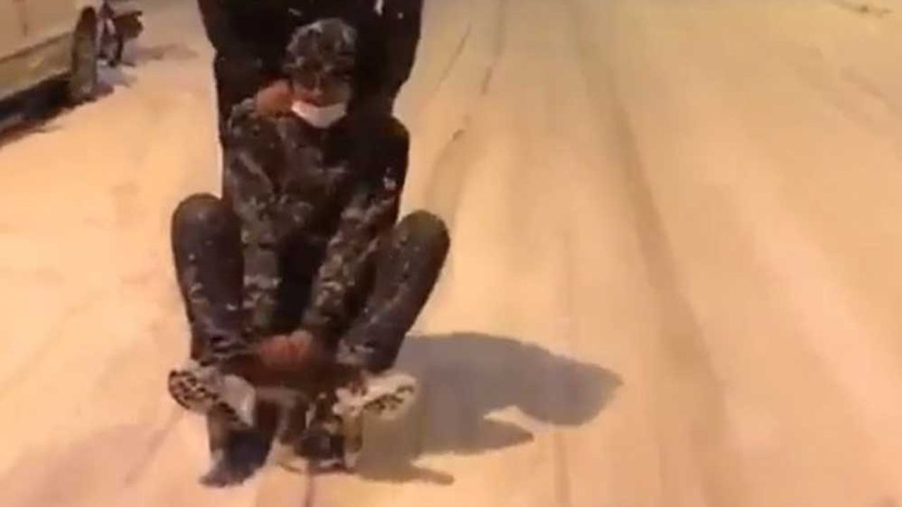Yoğun kar yağışı Marmara bölgesini etkisi altına alırken Bursa'da 2 genç araçlarının arkasına bağladıkları kızakla kaydı.