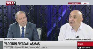 Kulis’te İsmail Dükel ve konuğu CHP Grup Başkanvekili Engin Özkoç, Yargının siyasallaşmasını değerlendiriyor. Özkoç '12 Eylül yasalarıyla 20 Temmuz darbe yasalarını öyle bir pekiştirdiniz ki sadece bir tek kişinin söylediği sözün hüküm sürdüğü bir Türkiye söz konusu. O yüzden sizin bu söylediklerinizi insanlar artık güvenmiyor' dedi.