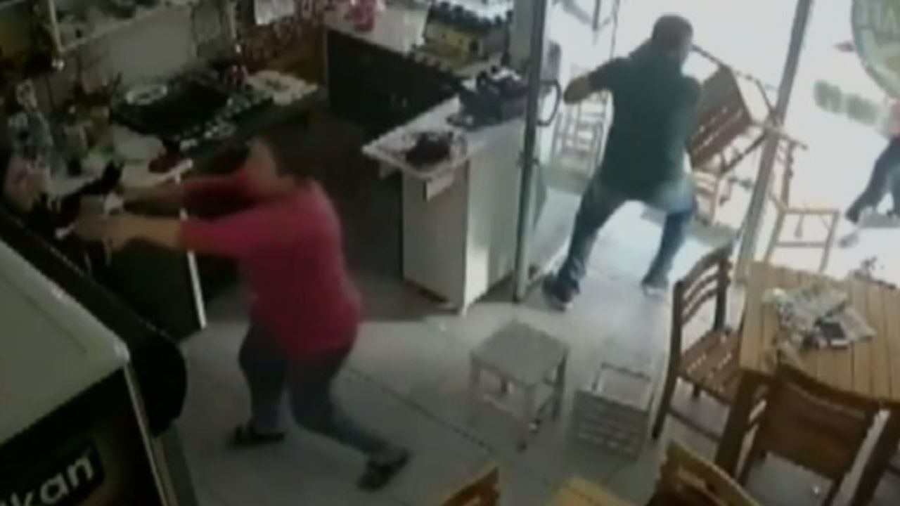 Genel Rakip işletmeler birbirine girdi; tabure fırlatıp biber gazı sıktıkları anlar kameraya yansıdı... 22.10.2019 - 09:31 22.10.2019 - 09:31 İzmir'in Gaziemir ilçesinde, ev yemekleri yapılan işletmeye, aynı mahalledeki rakip işletmenin sahipleri tarafından taşlı ve sopalı saldırı düzenlendi. Bir kadının da tabure fırlatıp, biber gazı sıktığı o anlar, işyerinin güvenlik...