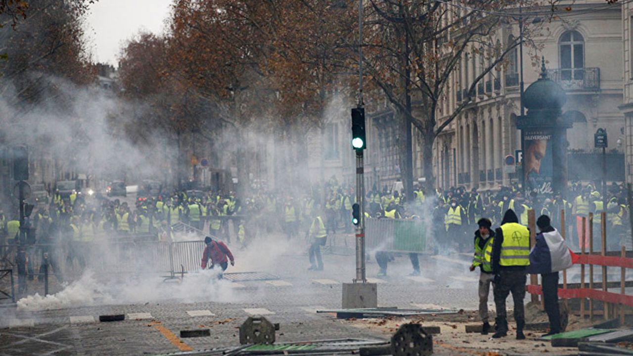 Sarı Yelekliler adıyla anılan eylemciler, bugün de polis barikatlarını aşarak Şanzelize Caddesi'ne girdi. Polisin biber gazıyla müdahale...