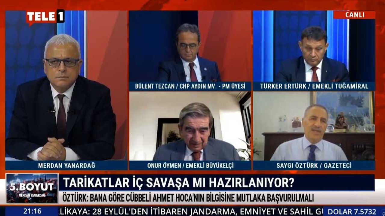 Merdan Yanardağ'ın hazırlayıp sunduğu 5. Boyut'un bugünkü konukları, Emekli Tuğamiral Türker Ertürk, CHP PM üyesi Bülent Tezcan, Emekli Büyükelçi Onur Öymen ve Gazeteci Saygı Öztürk oldu.