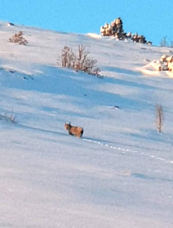 Sivas Mesleki ve Teknik Anadolu Lisesi Beden Eğitimi Öğretmeni Levent Zoroğlu, Yıldız Dağı Kış Sporları ve Turizm Merkezi'nden dönerken Karaçayır köyü mevkisinde arazide bir hayvan gördü.