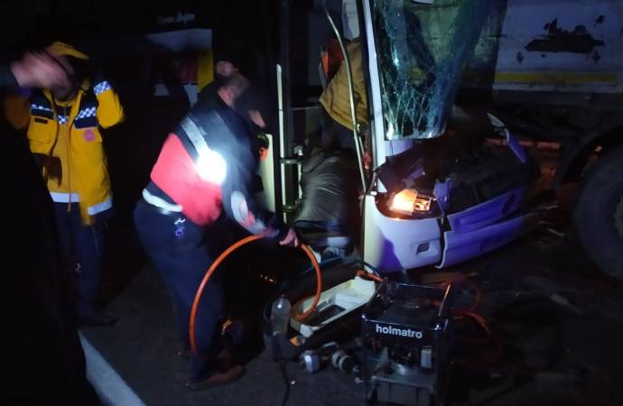 Sivas'ta sürücülerinin kimliği henüz belirlenemeyen Sivas Hedef Turizm'e ait 58 ABB 534 plakalı yolcu otobüsü ile 42 AIJ 315 ve 34 CGG 457 TIR'lar, Sivas-Kayseri kara yolu Maksutlu köyü mevkisinde çarpıştı.