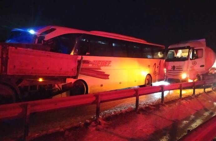 Sivas'ın Şarkışla ilçesinde aşırı buzlanmadan dolayı iki TIR ve bir yolcu otobüsünün karıştığı zincirleme kazada 1 kişi öldü, 13 kişi yaralandı.