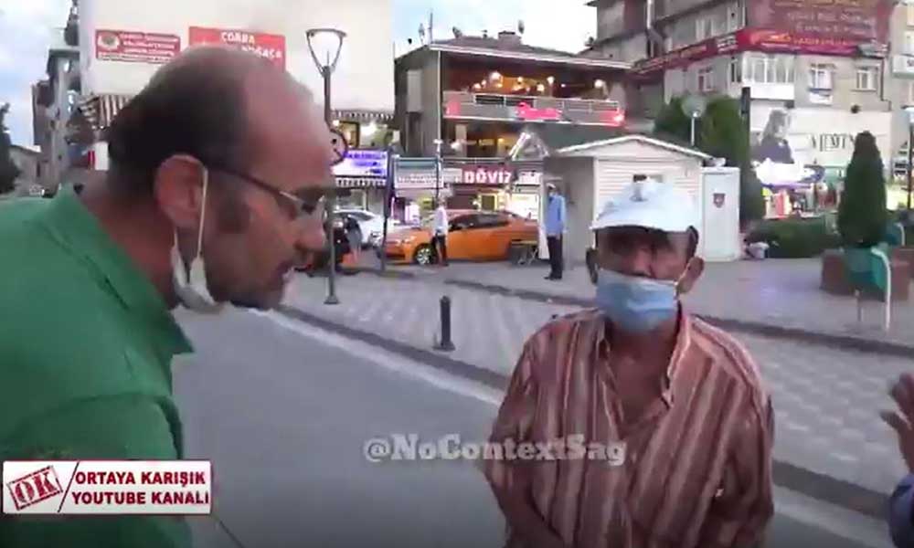 Sadece engelli maaşı ile geçindiğini, faturalarını komşularının ödediğini söyleyen Yunus Kumru isimli vatandaşa röportaj sırasında yeşil tişörtlü başka bir vatandaşın sarf ettiği sözler büyük tepkilere neden oldu.