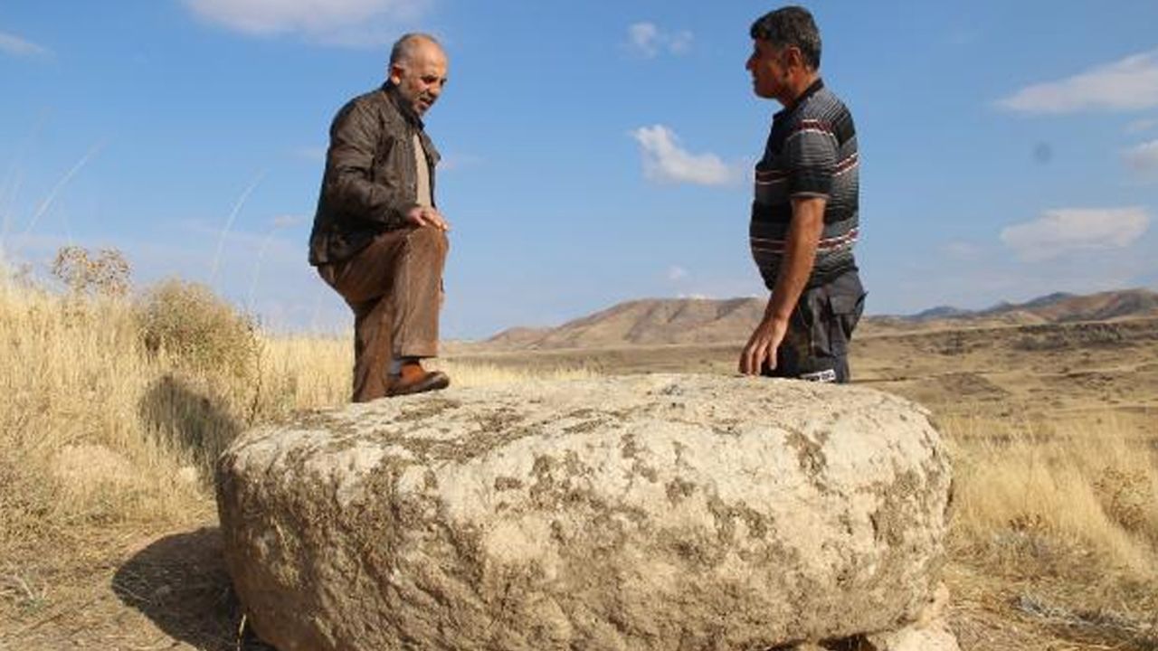 Elazığ'da tarlada temizlik yapan köylüler, 150 yıllık olduğu tahmin edilen değirmen taşı buldu.