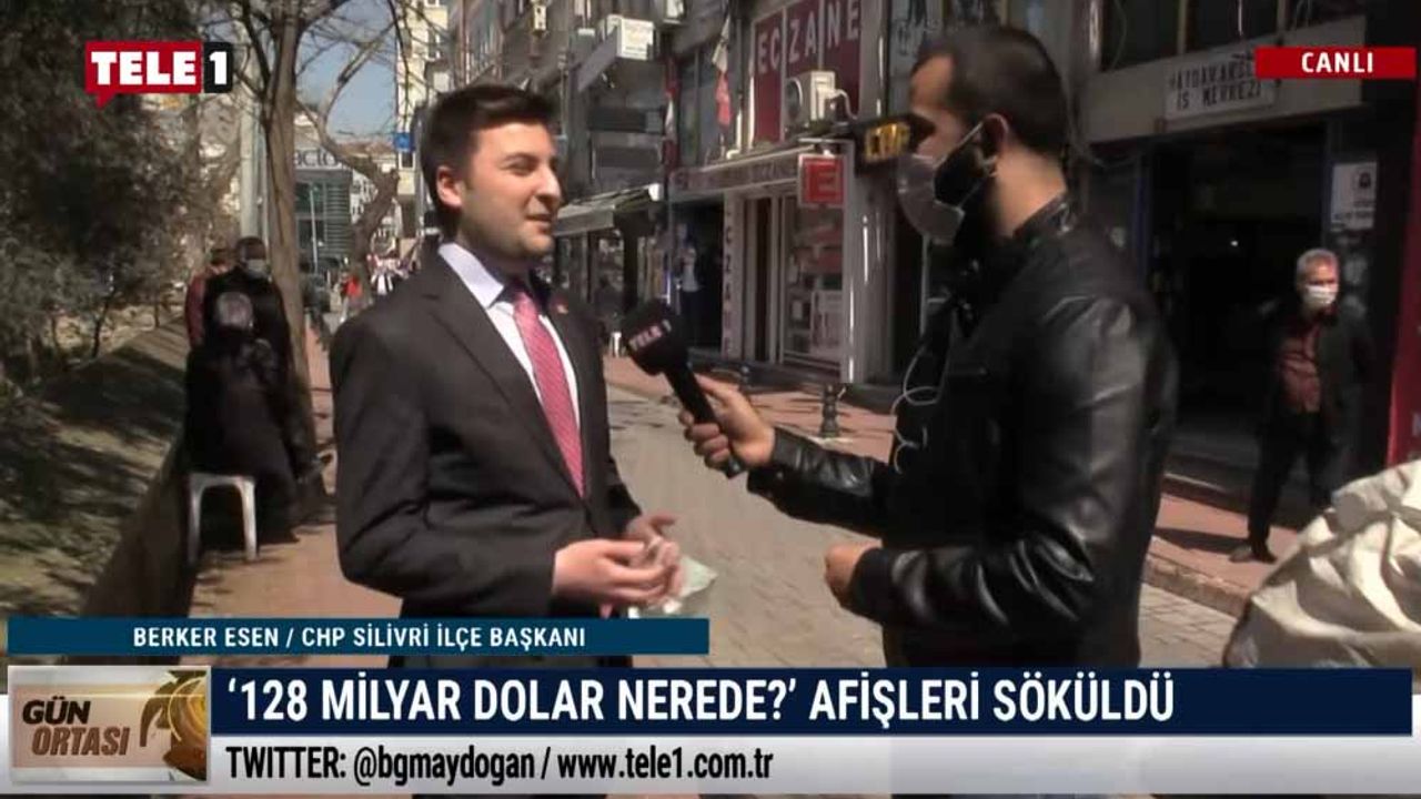 Ülkenin birçok yerindeki '128 milyar dolar nerede?' afişlerinin kaldırılmasının ardından, TELE1 muhabiri Engin Açar, Silivri İlçe Başkanı Berker Esen ile Gün Ortası'na bağlandı. Esen, siyaset yapılmalarının engellenmeye çalışıldığını belirterek, 84...