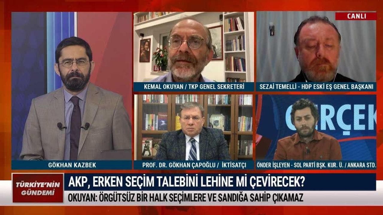 Gökhan Kazbek'in sunduğu Türkiye'nin Gündemi'nin bu haftaki konukları; Türkiye Komünist Partisi Genel Sekreteri Kemal Okuyan, eski HDP Eş Genel Başkanı Sezai Temelli, Sol Parti Başkanlar Kurulu üyesi Önder İşleyen ve...