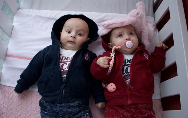 Hollanda'nın Arnhem kentinde yaşayan fanatik Trabzonspor taraftarı Ümit ve Meryem Şenyer çifti, geçen yıl ağustos ayında doğan ikiz çocuklarına "Bordo" ve "Mavi" ismini verdi.