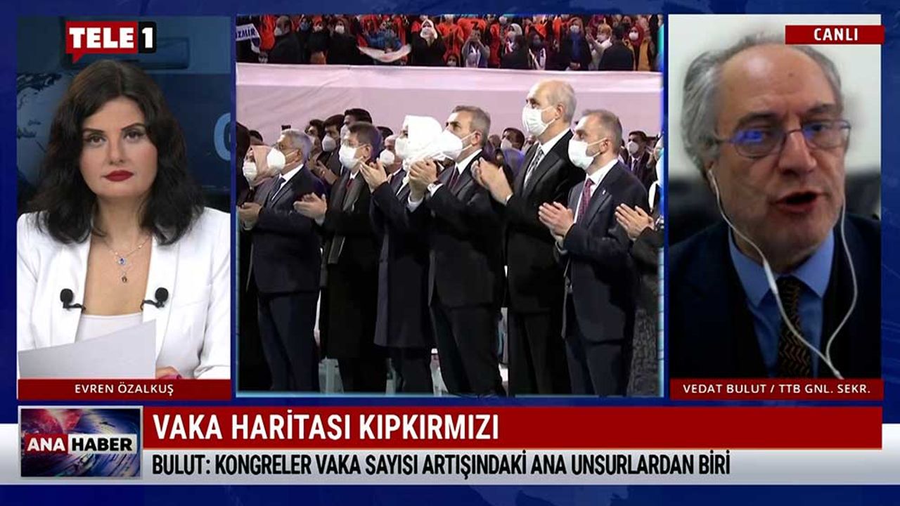 Evren Özalkuş'un sunduğu TELE1 Ana Haber'in bugünkü konuğu; TTB Genel Sekreteri Vedat Bulut oldu. Kırmızıya boyanan vaka haritasına rağmen kapanma tedbirlerinin Ramazan ayına ertelenmesini değerlendiren Bulut, kongrelerin vaka sayısı artışındaki...