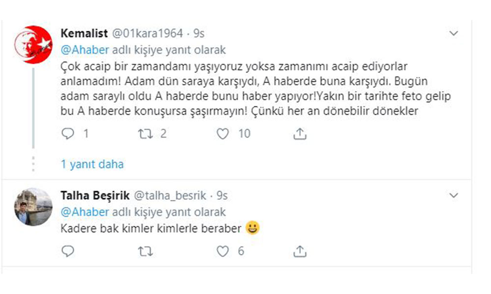 Türkiye Barolar Birliği Başkanı Metin Feyzioğlu'nun, A Haber'de yaptığı açıklamalar sosyal medyada büyük tepkiyle karşılandı. https://tele1.com.tr/yargitay-icerisinde-adli-yil-acilis-toreni-krizi-20-kadar-yargitay-uyesi-de-katilmayacak-77493/ 41 baro, Saray’da yapılacak asli yıl açılış törenine katılmama kararı alırken, törene katılacağını açıklayan Türkiye Barolar Birliği Başkanı Metin Feyzioğlu, yandaş A Haber’e çıktı. Feyzioğlu, "Rahmetli Demirel ve Ecevit başbakanlıkta yargı reformu paketi açıkladı. Önemli bir paketti. Şimdi Başbakanlık yok Cumhurbaşkanlığı Hükümet Sistemi var. Eee bunu kim açıklayacak. Devletin en üst makamı kimse çıkar 82 milyonun karşına açıklar ve taahhüt eder. Siz o taahhüt yerine getirilmezlerse hesap sorun. Nerede açıklanacaktı sizin evinizde mi açıklayacak" ifadelerini kullandı. https://tele1.com.tr/muharrem-inceden-barolar-birligi-baskani-metin-feyziogluna-cagri-77080/
