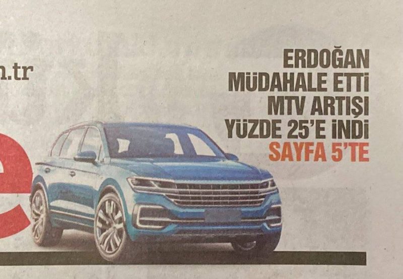 AKP'ye yakınlığıyla bilinen Türkiye gazetesi, yüzde 25'lik MTV zammını 'Erdoğan müdahale etti, MTV artışı yüzde 25'e indi' diye haberleştirdi.