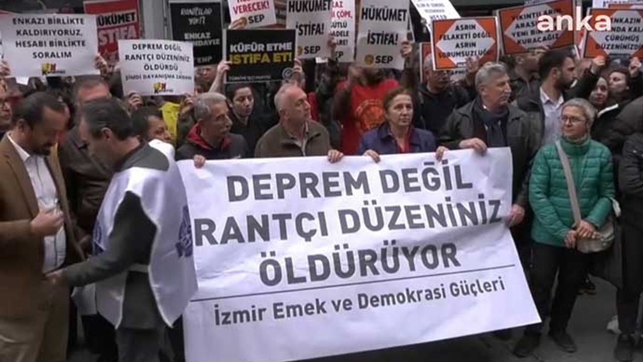 İzmir Emek ve Demokrasi Güçleri, Kahramanmaraş merkezli depremlerdeki can kayıpları ve depremler sonrası yaşananlar nedeniyle AKP hükümetini protesto etti.