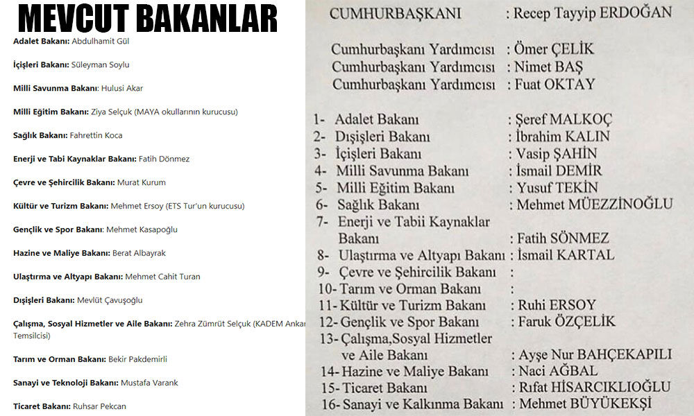 İŞTE YENİ KABİNE OLACAĞI İDDİA EDİLEN LİSTE