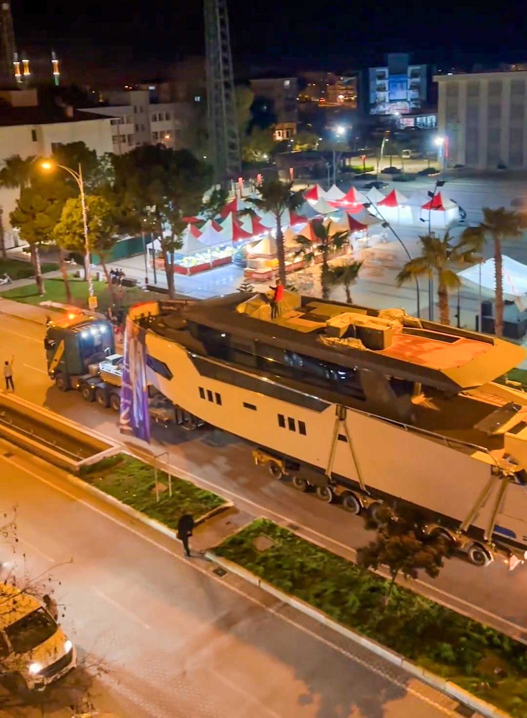 Hekimoğlu, organize sanayi bölgesinde faaliyet gösteren fabrikasında Dubaili bir iş insanı için 3 yılda yapımı tamamlanan 25 metre uzunluğundaki yatı, denize indirmek için fabrikadan çıkarttı. Kamyona yüklenen özel yata ise Hekimoğlu’nun isminin yazılı olduğu bayraklar ve Türk bayrağı asıldı.