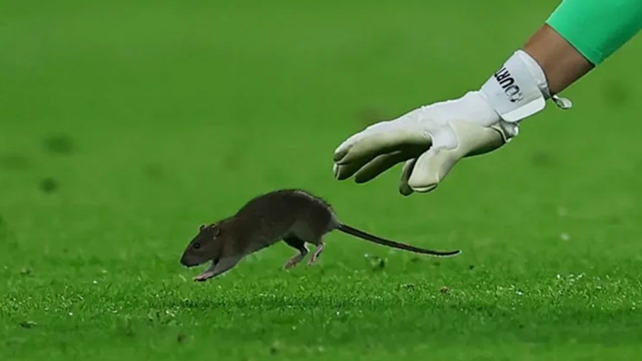 Karşılaşmanın ikinci yarısında sahaya giren bir fare, hem futbolcuların hem de tribünlerin dikkatini çekti.
