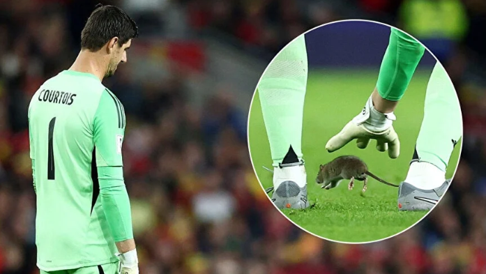 Belçika Milli Takımı ve Real Madrid kalecisi Thibaut Courtois, refleksle harekete geçerek hayvanı yakalamaya çalıştı ancak başarılı olamadı. Küçük misafir kısa sürede tribünlerin altına kaçarak ortadan kayboldu.