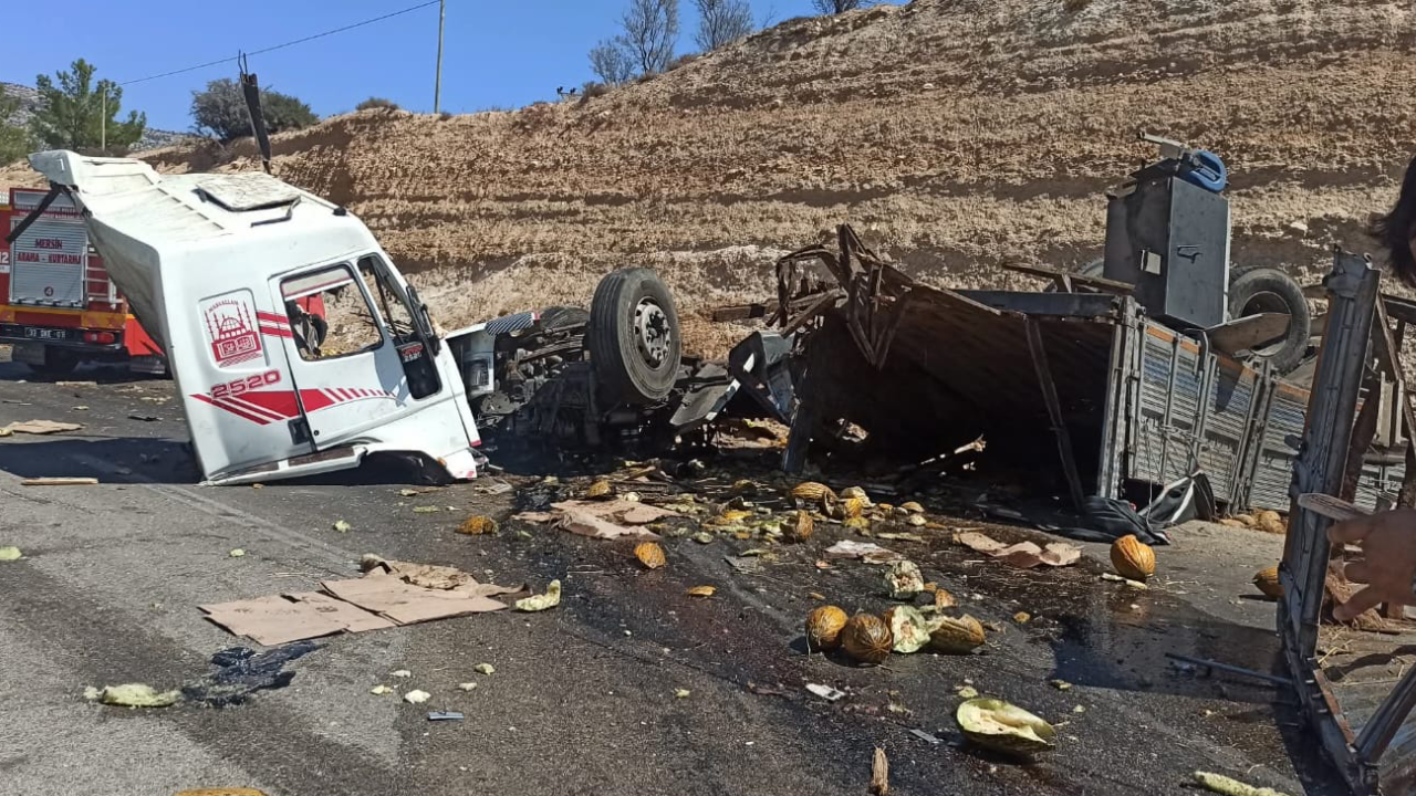 Kazada, kamyondaki kavunların da yol kenarına dağıldığı görüldü.