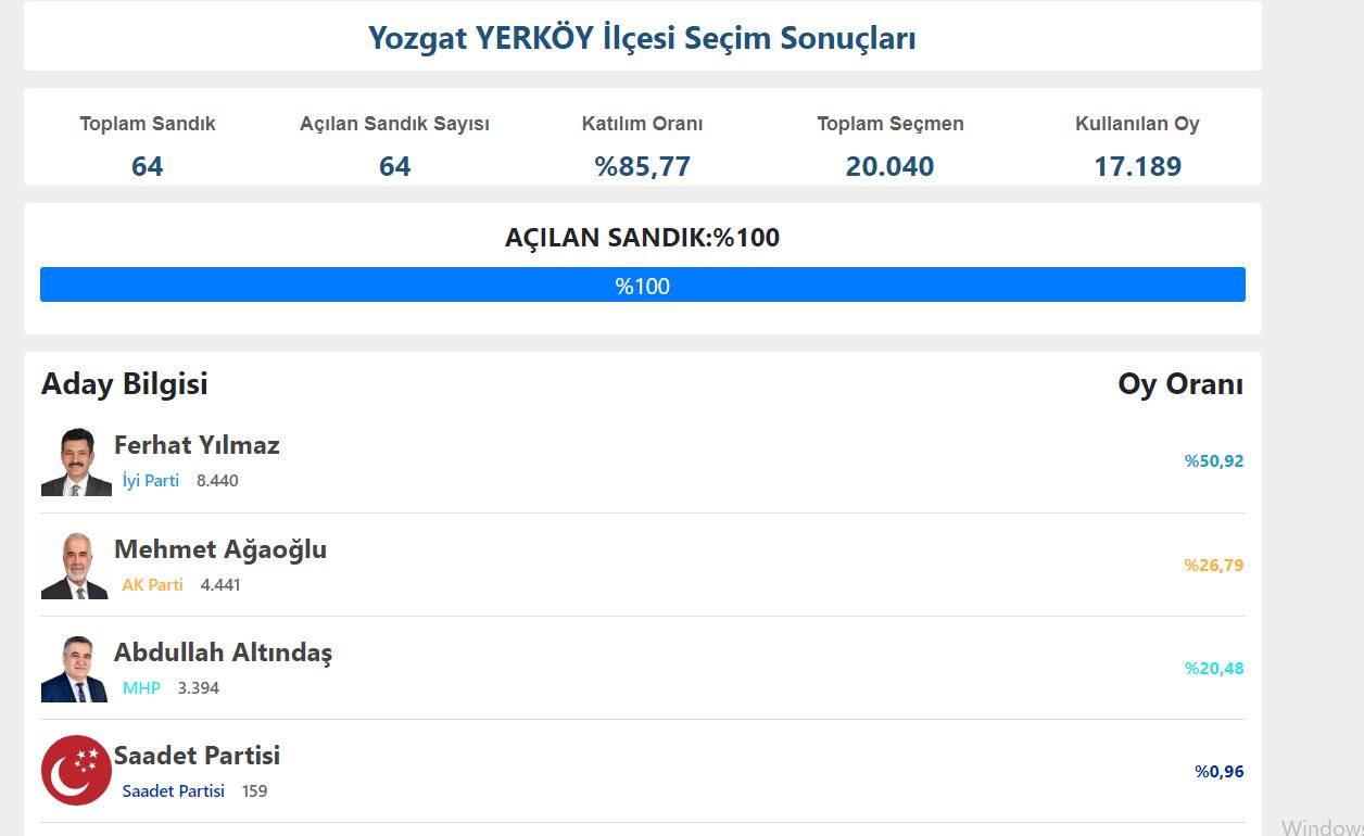 Yerel seçimde sandıklar açılırken AKP'nin kalesi Yozgat'ta AKP Yerköy ilçesini kaybetti. Şeker pancarı fabrikalarının özelleştirilmesinden sonra şeker pancarı üreticileri mağdur olmuştu. Yozgat'ın Yerköy ilçesindeki vatandaşlar AKP'ye tepkilerini sandıkta verdiler