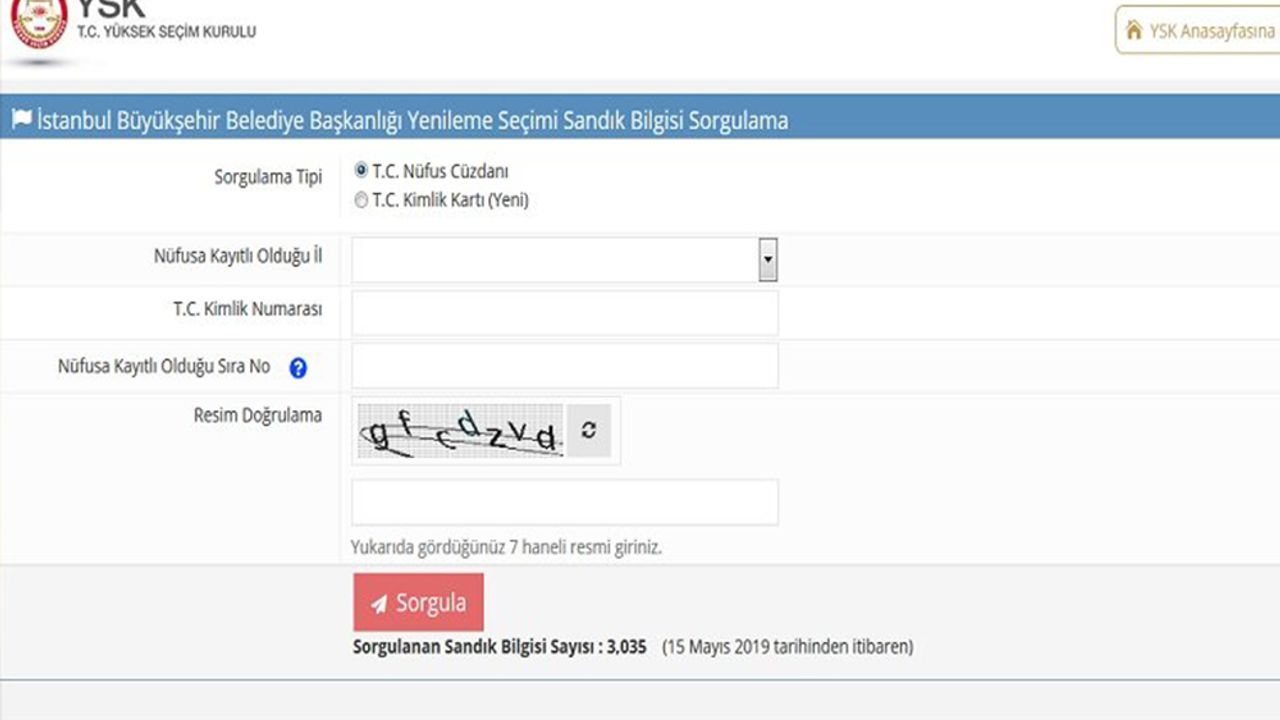 23 Haziran'da yenilenecek olan İstanbul Büyükşehir Belediye Başkanlığı seçiminde oy kullanacaklar için sorgulama uygulamasını hizmete girdi. YSK'nın 23 Haziran seçimleri için açtığı "Sorgulama" sistemi devreye girdi.